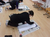 書き初め用紙に「世界の国」を書きました。 床の上で初めて書いたので、姿勢に注意...
