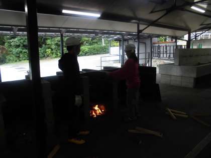 かまど係は,どの班も一発で火をつけました。