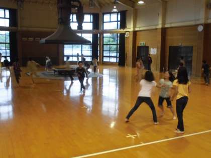 天気の関係で,プレイホールで行いました。