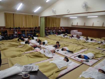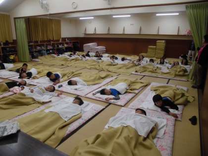 今日は予定を変更して,60畳の部屋に全員で寝ることにしました。