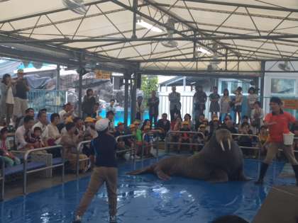 鳥羽水族館では、いろいろな魚を見たり、ショーを見たりしました。セイウチとのふれあいタイムには、直接セイウチに触れることができました。