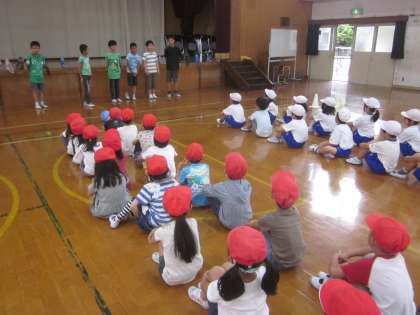 今日は,みんなが楽しみにしていたドッジボール大会!2年生と楽しみました。投げたり走ったり,少しの練習でしたが,とっても楽しんでいました。またクラスでもいっぱいやってみようね!