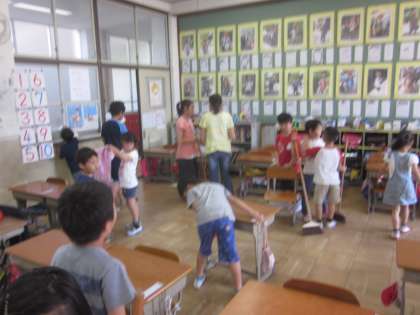6年生のお兄さんとお姉さんに手伝ってもらって頑張っています。