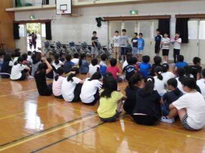 中間休みに,運動委員会主催のドッヂボール大会がありました。ハンデはコートの広さが違うこと,さすがに高学年ともなると,強いボールを投げることができる人が多く,迫力がありました。