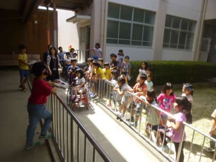 全員が自分で車椅子を動かしたり,押してもらったり,押したりしました。