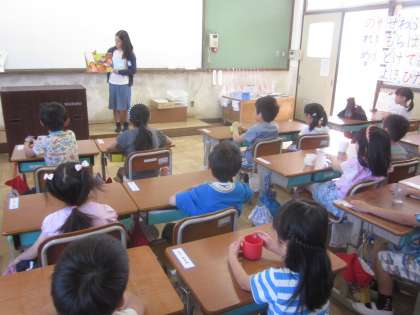 図書委員会が来てくれて,朝の読み聞かせをしてくれています。子どもたちとっても楽しんでいます。