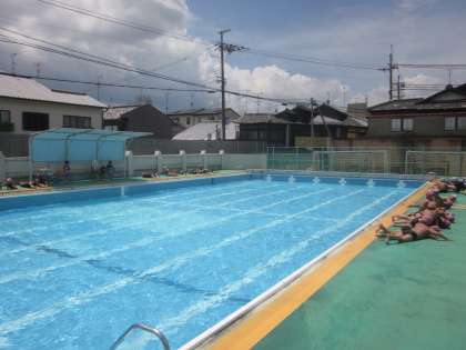 絶好のお天気でした。今日もふし浮き・バタ足の練習をしっかりと行いました。プールサイドでの甲羅干しもとっても気持ちが良かったです。