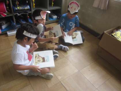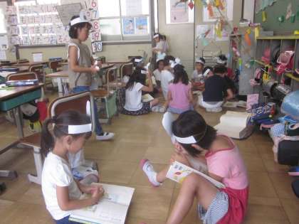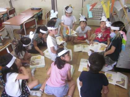 おじいさん・おばあさん・ネズミグループの練習のお様子です。教科書に書かれている文章にさらに付け足して,練習しているところもありました。