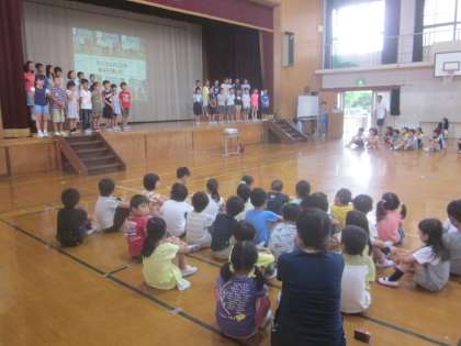 4年生のみさきの家発表,3年生の詩の発表,しっかりと聞いていました。全校の前で感想を発表した子もいました。