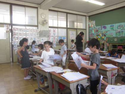 これまでに頑張ってきたプリントをまとめました。一つ一つを見返しながら,自分の間違いを確認したり,書き順を改めて確認したりしていました。持ち帰っていますのでご確認ください。