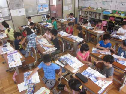 じゃんけんすごろくで盛り上がりました。隣りや近くの子と仲良く進めています。何気ないことなんですが,すぐに楽しむことができる1年生って,やっぱりすごいです。