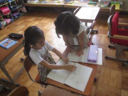 みんなで増え鬼が終わった後には,思い思いの中間休みを楽しんでいました。写真は,ドッジボール,虫さがし,教室でお絵かきの様子です。