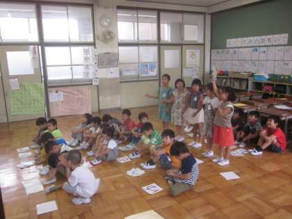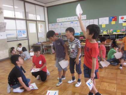 14日(木)の朱六タイム(8:40〜)では,1年生は詩の発表をします。音読の宿題でもがんばっている「ひとこと辞典」を発表します。グループで身振りをつけて楽しんで練習をしています。