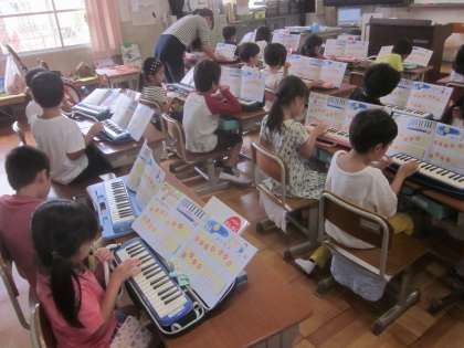 今日は鍵盤ハーモニカ練習を中心に頑張りました。練習を重ねてスムーズになってきました。またおうちに持ち帰り練習もしますので,聞いてあげてください。