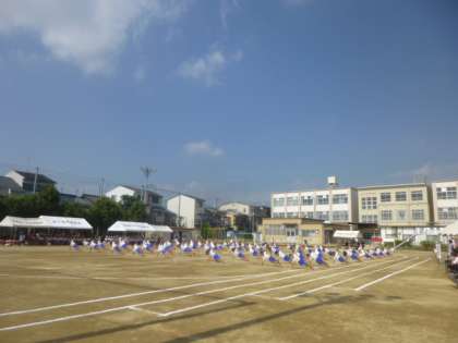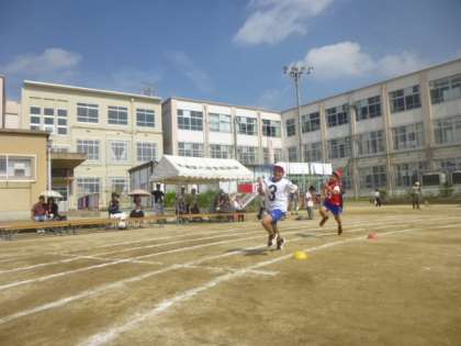 *リレーの様子,5・6年の組体操です。