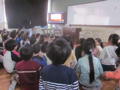 今日は1・2年生一緒に,昨年度の学芸会のビデオを見ました。1年生から「すごいなぁこんなことをするんや」,2年生からは「なつかしいなぁ」「今年もがんばろうな」といった声も聞こえました。
