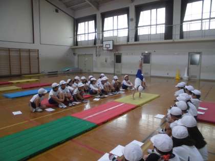 マット運動のまとめとして,連続技の発表会をしました。最初はできなかった技も練習を重ね,堂々と発表することができました。振り返りでも,「上手になったところをみんなに見てもらえてよかった。」「緊張したけどやってよかった。」など手ごたえや達成感が見られました。マット運動が好きになった子が増えたようです。