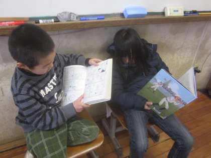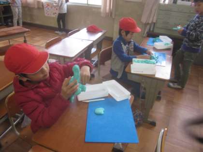 教室では,粘土を楽しんだり,読み聞かせを楽しんだりしていました。外はとっても寒いです。