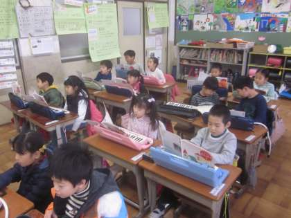「もういくつ寝るとお正月〜♪」みんなで楽しく歌いました。鍵盤ハーモニカの練習もがんばっています。