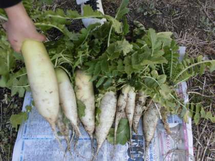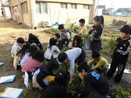 生活科の学習で育てていた大根を収穫しました。抜いた大根は,一本ずつ持って帰りました。