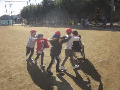 ちょっと日がさすと暖かな運動場。みんな楽しそうに過ごしています。今日は3週間ぶりに全員がそろった1年生でした。明日も元気に学校生活をがんばろう!