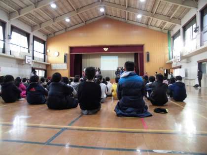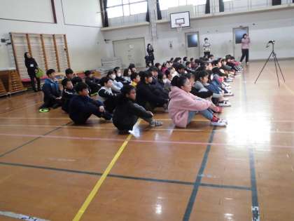 今日は,朱六タイムで4年生の詩の発表と,3年生の「自分たちの一年間」の発表がありました。6年生にとっては最後の朱六タイム,姿勢良く聞くことができたり,質問をすることができたり,高学年らしく臨むことができました。計画委員の司会進行もとても良かったと思います。