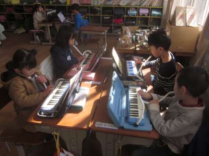 繰り返して「きらきら星」を練習しています。グループでそろえようと声をかけあって練習しています。