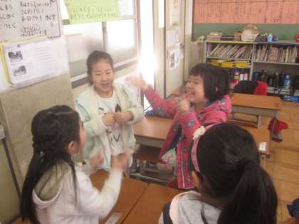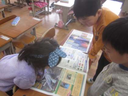 子ども新聞を読んで,オリンピックのことを調べています。手遊び歌も楽しそうでした。