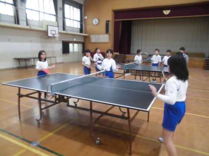 最終日の今日は,6年生とのお別れ試合をトーナメント形式でしました。1年間の練習の成果を発揮し,真剣勝負で戦いました。学年を越えて,卓球を楽しむ姿がたくさん見られました。
