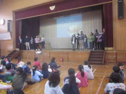 中間休み終了後に体育館全員集合!サプライズで教職員から子どもたちにエールを送りました!