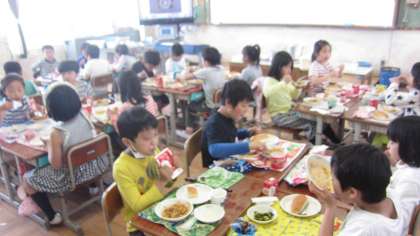 給食は「おいしいな」と言いながらみんなで楽しく食べました。