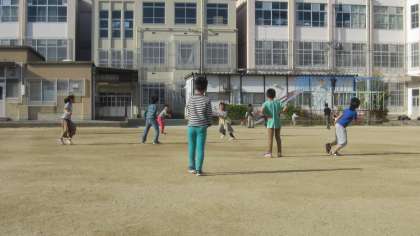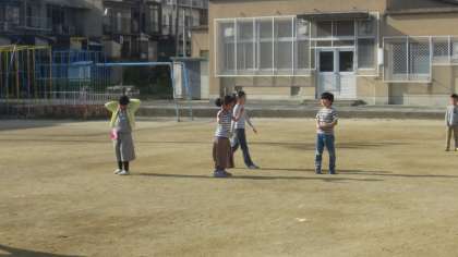 放課後,クラスの友だちや2年生,4年生と一緒にドッジボールやばらあてをして楽しくグラウンドで遊びました。