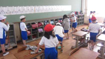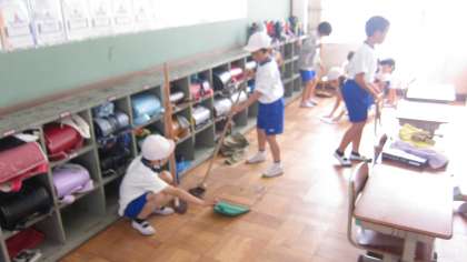 3−1の教室を友達と協力してきれいに掃除をしています。
