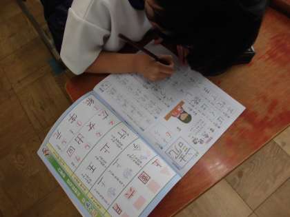 昨日から漢字の学習を始めています。2年生初めの字は『読』。漢字の中に入っているカタカナを見つけて楽しみました。