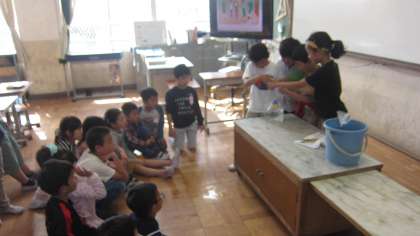 今日は,実験係が水,ビニール袋を使った面白い実験をしてくれました。