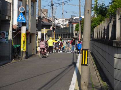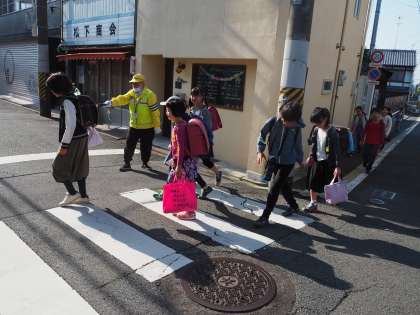 交差点では、地域の方々が「おはようございます」という声掛けと、安全確認、誘導をしてくださっています。