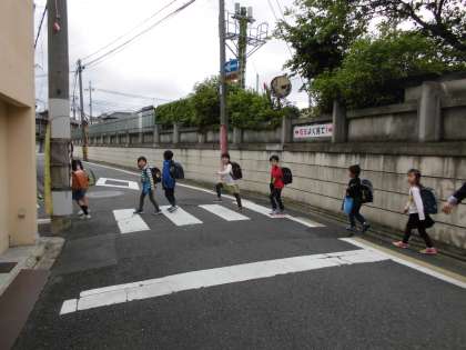 交通安全教室で学んだことを思いだしながら集団下校をしています。道をわたる時は「右・左」だけでなく「うしろ」も確認しています。路側帯の内側も歩けるようになってきたようです。これからも安全な歩き方を意識し続けてほしいと思います。