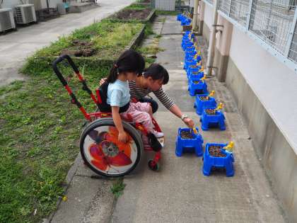 2年3組の理科の授業です。ヘチマの田椽をまきましたが、なかなか芽がでません。この日も観察しましたが、まだでした。はやく芽が出るといいですね。