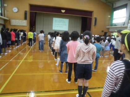 昨日の朝会で練習した全校合唱「明日に向かって」も,しっとりと素敵な雰囲気で歌うことができました。
