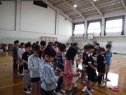 歌「いいことありそう」,歓迎の言葉,歌とリコーダー「子どもの世界」の順に発表をつなげました。十分な練習ができませんでしたが,少し緊張しながらもがんばって取り組む姿が見られました。