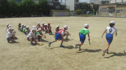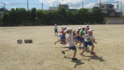 今日の体育科の学習では,リレーをしました。