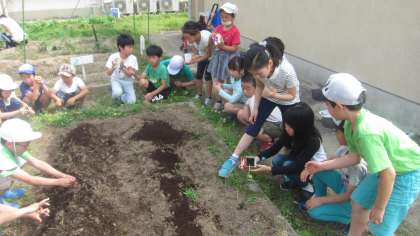 今日はヒマワリの種からでた芽を畑に植えかえました。