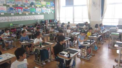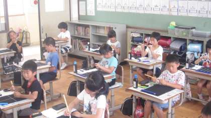 毛筆用具の種類・名称・置き方・扱い方・書写に対する心構えを学びました。