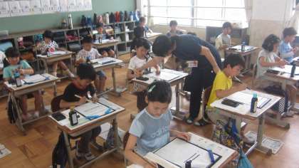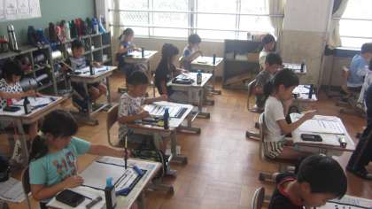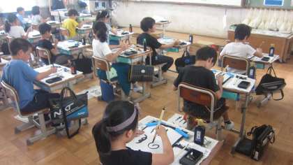 毛筆のよい姿勢,よい持ち方について学習しました。