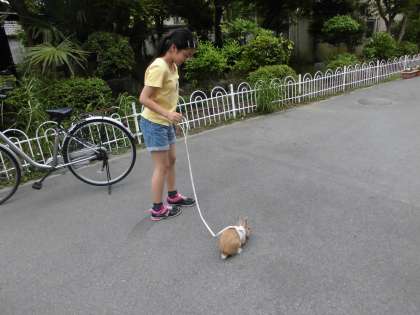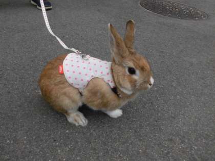 お天気がいい日は,うさぎの散歩「うさんぽ」だピョン!