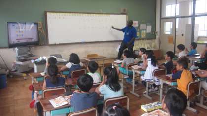 英語での数の数え方やじゃんけんのしかたをテビン先生に教えてもらいました。