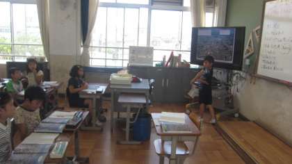 社会科の学習では,教科書の資料を使って京都市の町の様子について考えました。