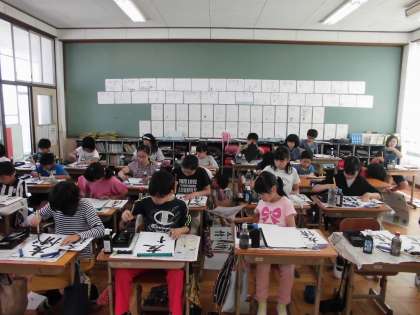 5時間目は,書写の時間です。落ち着いて,半紙に向かって筆を進めています。姿勢も意識しながら丁寧に書いていました。