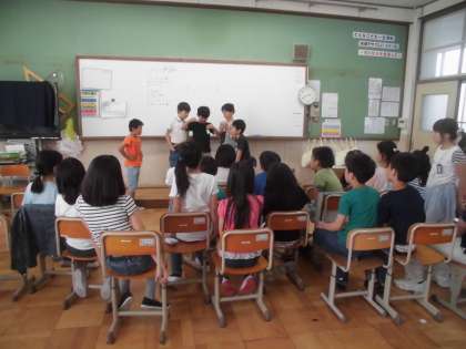 4年生は5・6校時,「一年間がんばろう会」ということで,お楽しみ会を行いました。それぞれの係で出し物を考え,楽しいひと時を過ごすことができました。友だちの知らなかった一面を発見できた人も多かったのではないでしょうか。クラスの団結が深まり,これからの様々な活動に活かされることと期待をしています。