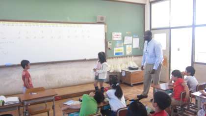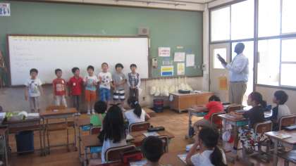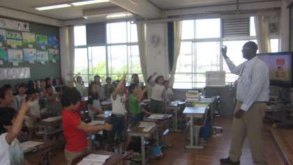 英語を使って1〜20まで数えたり,いろいろな国のあいさつを学習したりしました。